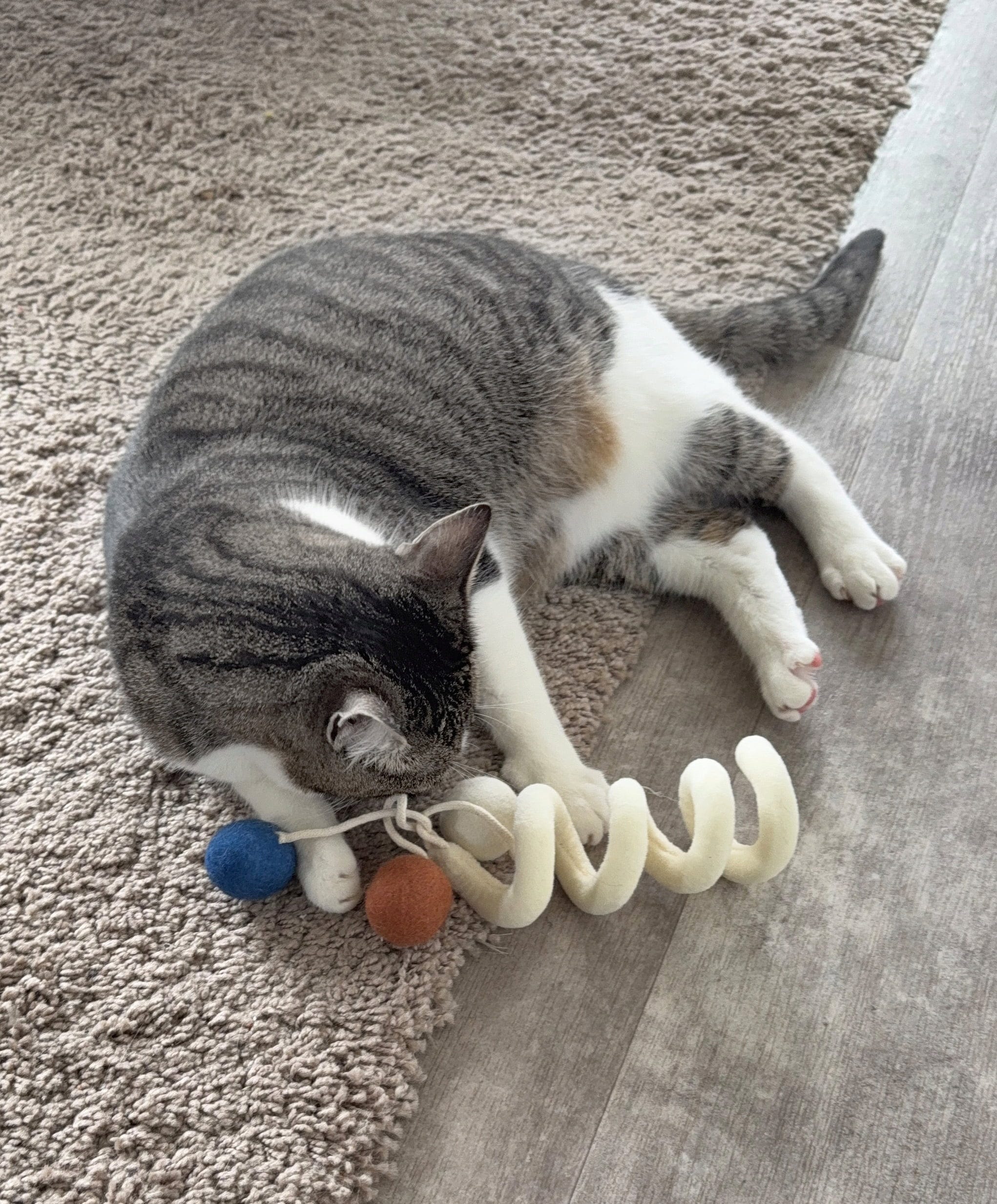 - Extra Spielspaß dank federnder Loops und 3 fest angenähten Filzkugeln