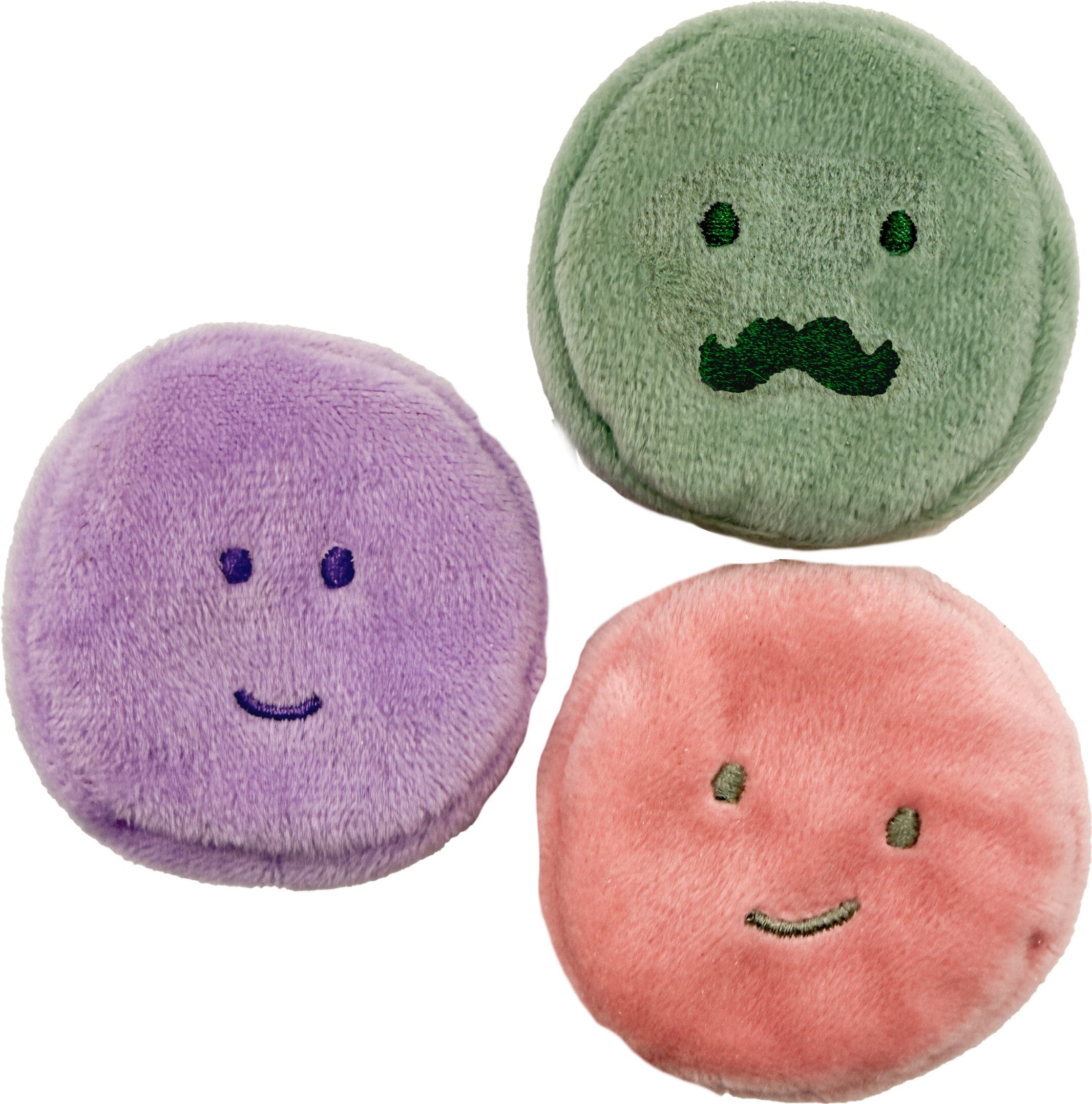 Mit diesem süßen Trio ist jede Menge Spielspaß garantiert! Außen kunterbunt und kuschelig weich und innen mit unwiderstehlicher Katzenminze sowie Silver Vine gefüllt sind sie ein ganz besonderer "Leckerbissen" für deinen Stubentiger.