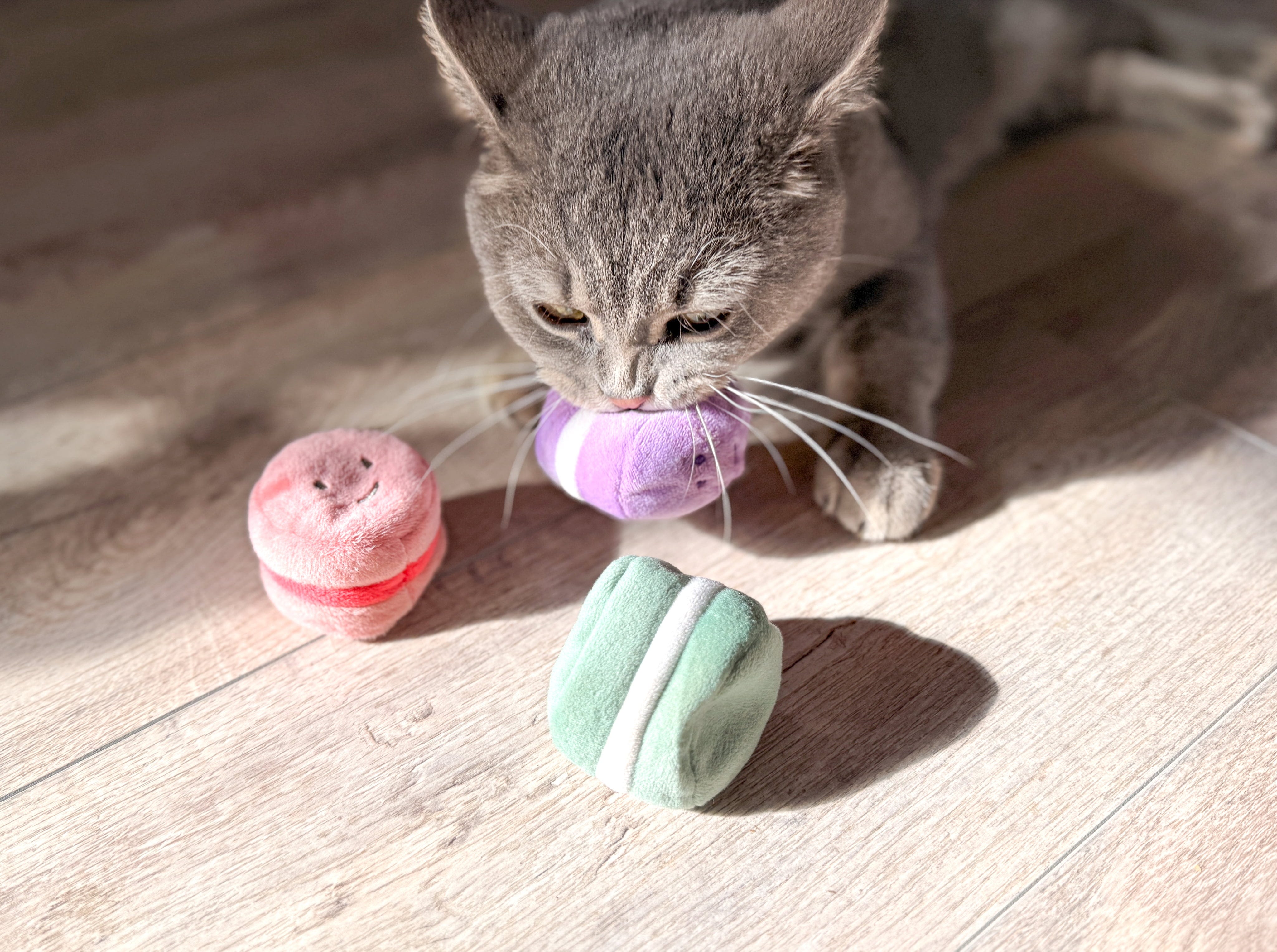 Erfahrungsberichte in Deutsch für Aumüller Katzenspielzeug Macarons 3er