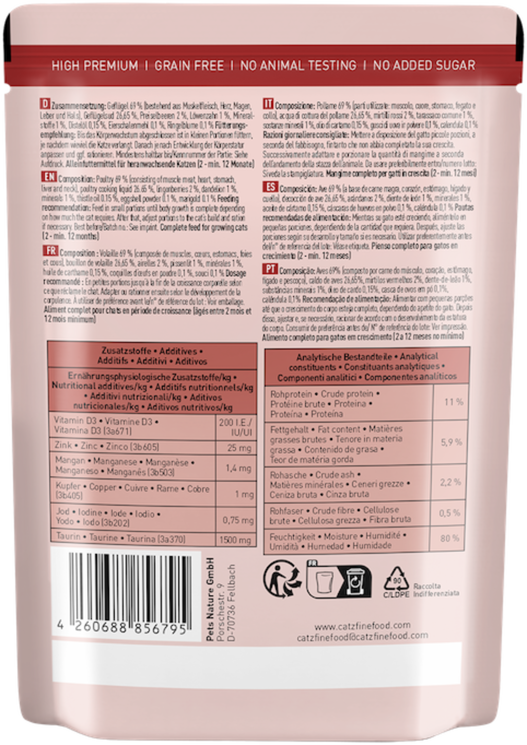 Erfahrungsberichte in Deutsch für catz finefood Classic Kitten No. 03 Geflügel