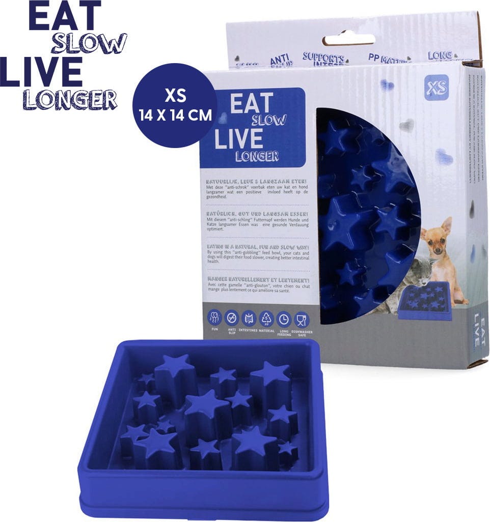 Doch wie kannst du dein Tier dazu bringen, langsamer zu fressen? Mit diesem Anti-Schlingnapf! Danke seiner speziellen Konstruktion kann dein Liebling das Futter schwerer erreichen und muss kleinere Bissen zu sich nehmen. Dies fördert langsameres Fressen und längeres Kauen - für Futtergenuss mit gutem Gewissen.