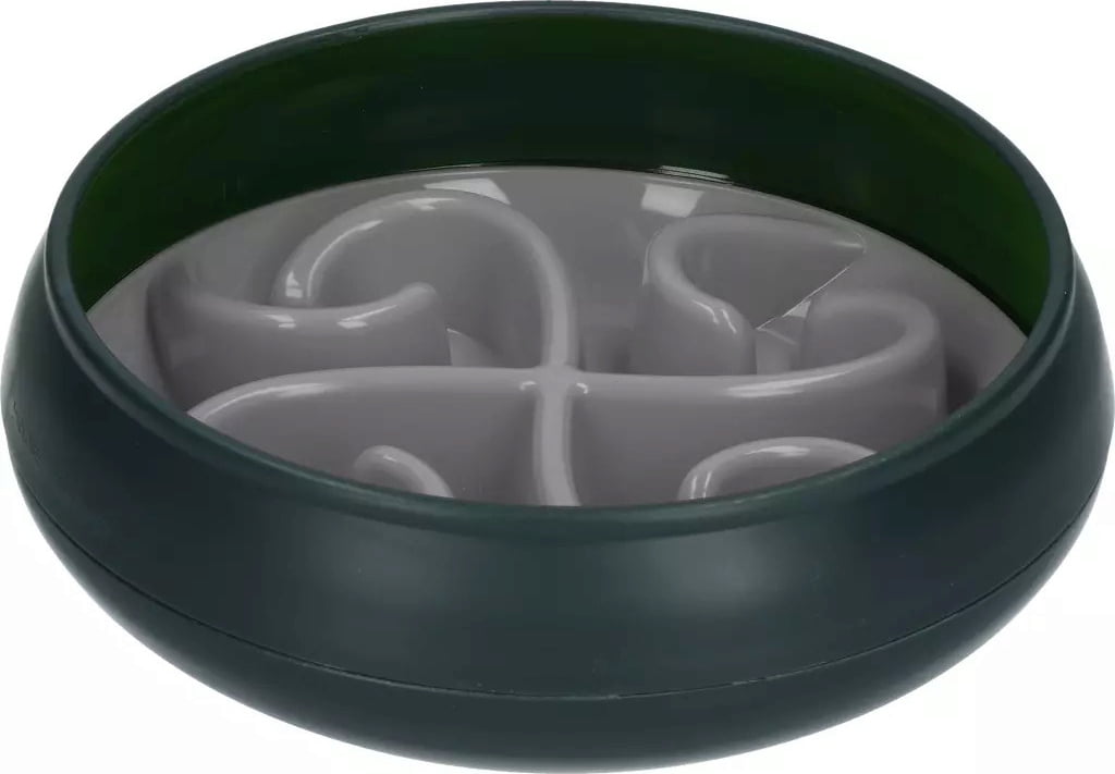 - Mit speziellem Spiralmuster, das schnelles Fressen und Schlingen verhindert