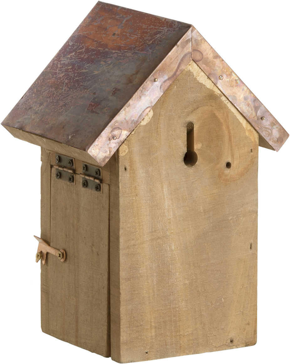 Dieser Nistkasten ist der ideale Ort für den Zaunkönig, um seinen Nachwuchs aufzuziehen oder im Winter einen geeigneten Unterschlupf zu finden. Noch dazu sieht das Häuschen aus Kiefernholz mit dem glänzen Kupferdach einfach nur bezaubernd aus.