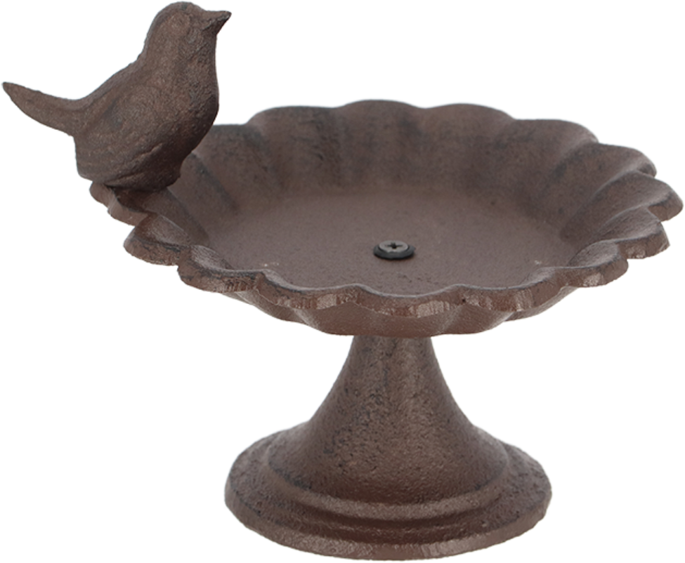 Die wunderschöne Vogeltränke aus Gusseisen ist die optimale Wasserquelle für unsere gefiederten Freunde und passt ganz wunderbar zu verschiedensten Blumenarragements im Garten.