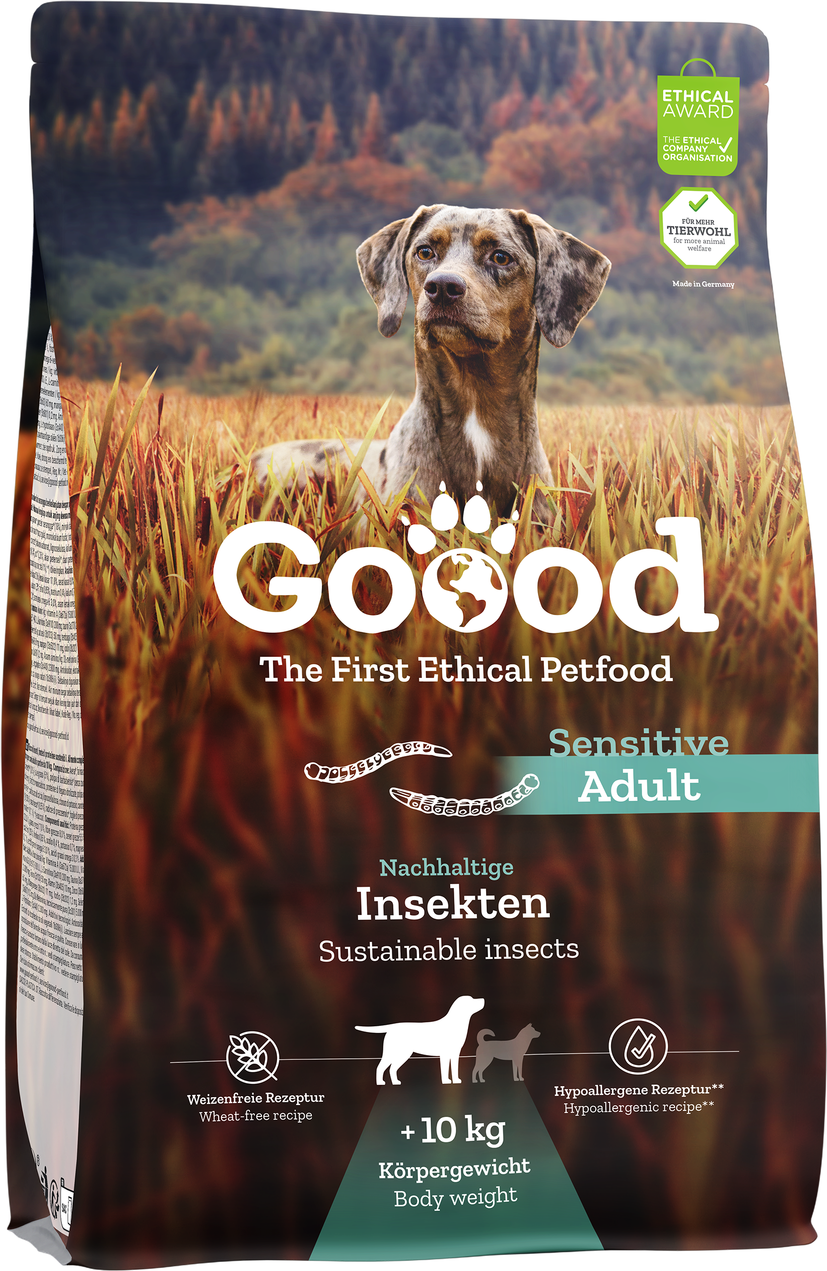 Suchst du für deinen Hund eine Ernährung, die nicht nur ausgewogen und artgerecht ist, sondern auch unsere Welt ein Stückchen besser macht? Dann ist Goood Adult Nachhaltige Insekten genau das Richtige! Denn artgerechte Ernährung bildet die Grundlage für ein vitales Hundeleben - und das mit vollem Respekt vor der Natur.