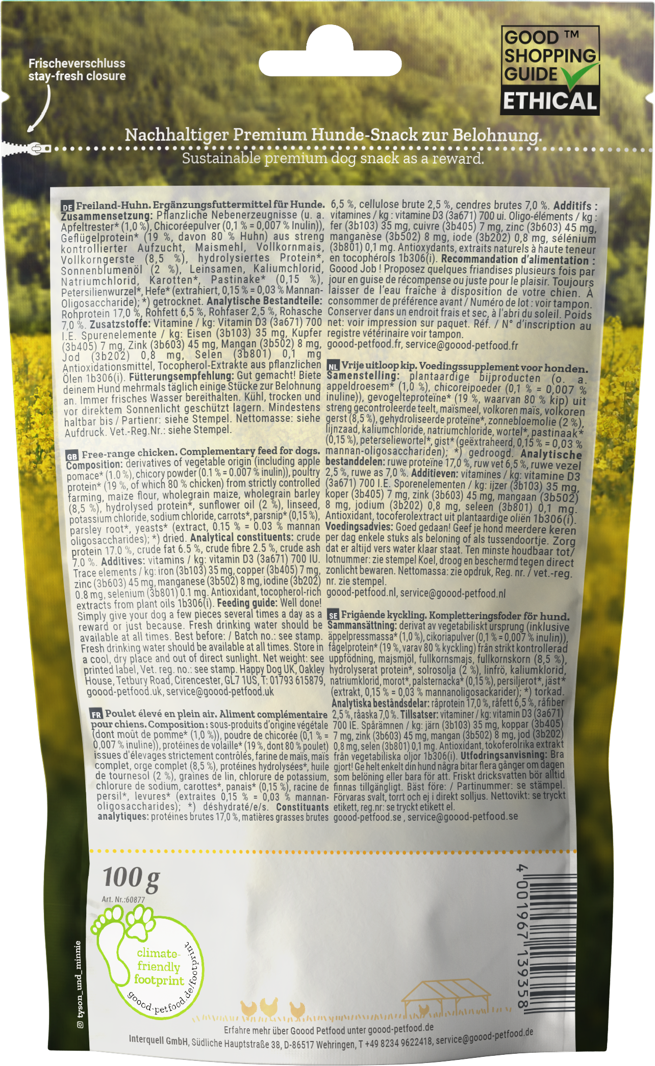 - Mit Hühnerfleisch aus artgerechter Freilandhaltung