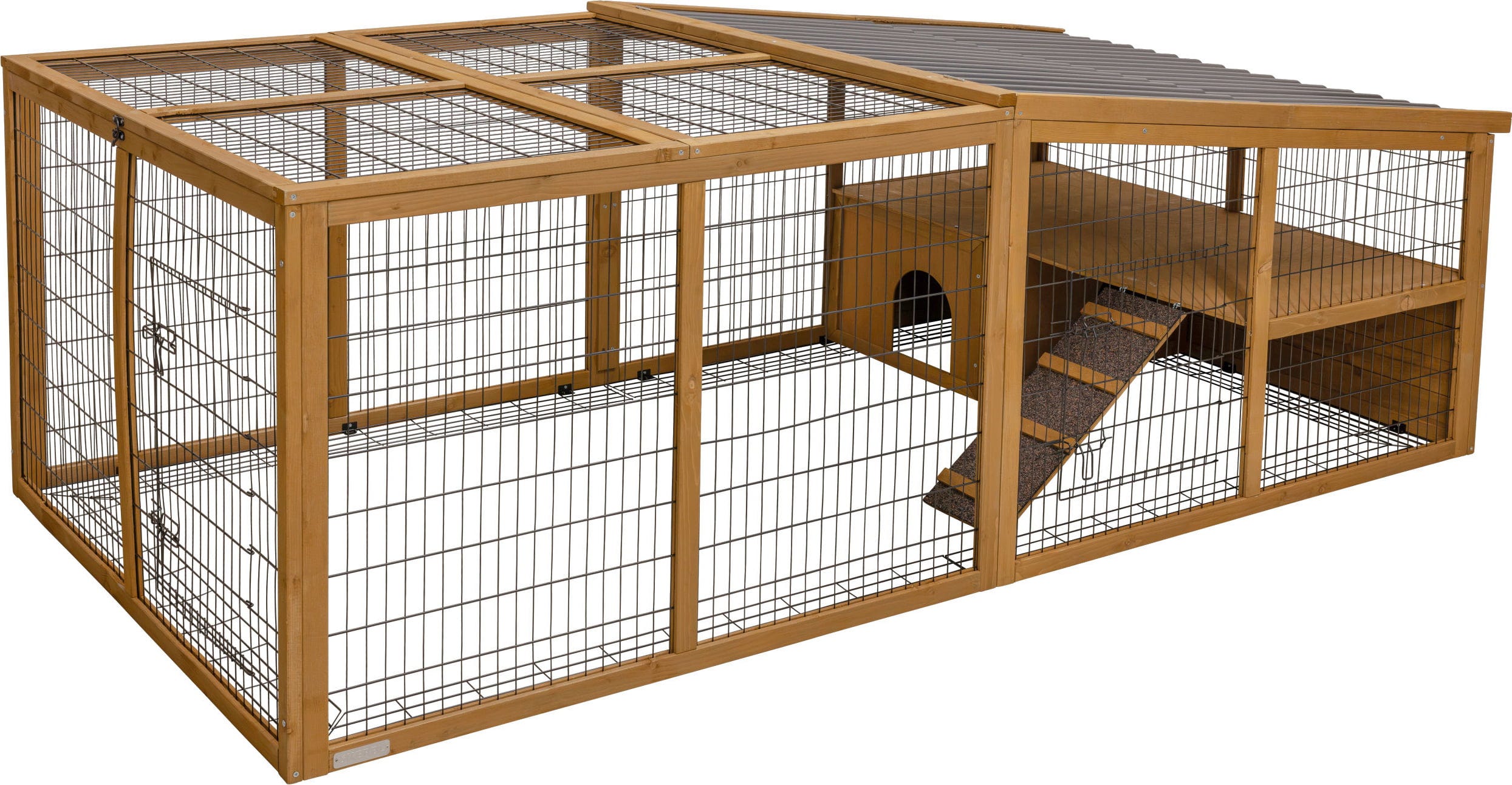 Dieses hochwertige Gehege bietet deinen Tieren einen sicheren und komfortablen Platz im Freien. Durch die Kombination aus robusten Materialien und durchdachten Details ist es der ideale Rückzugsort für Kleintiere.