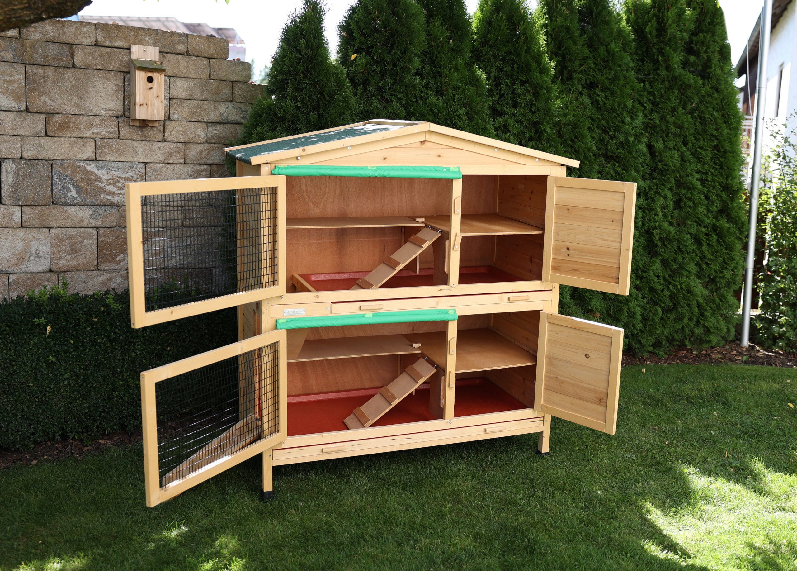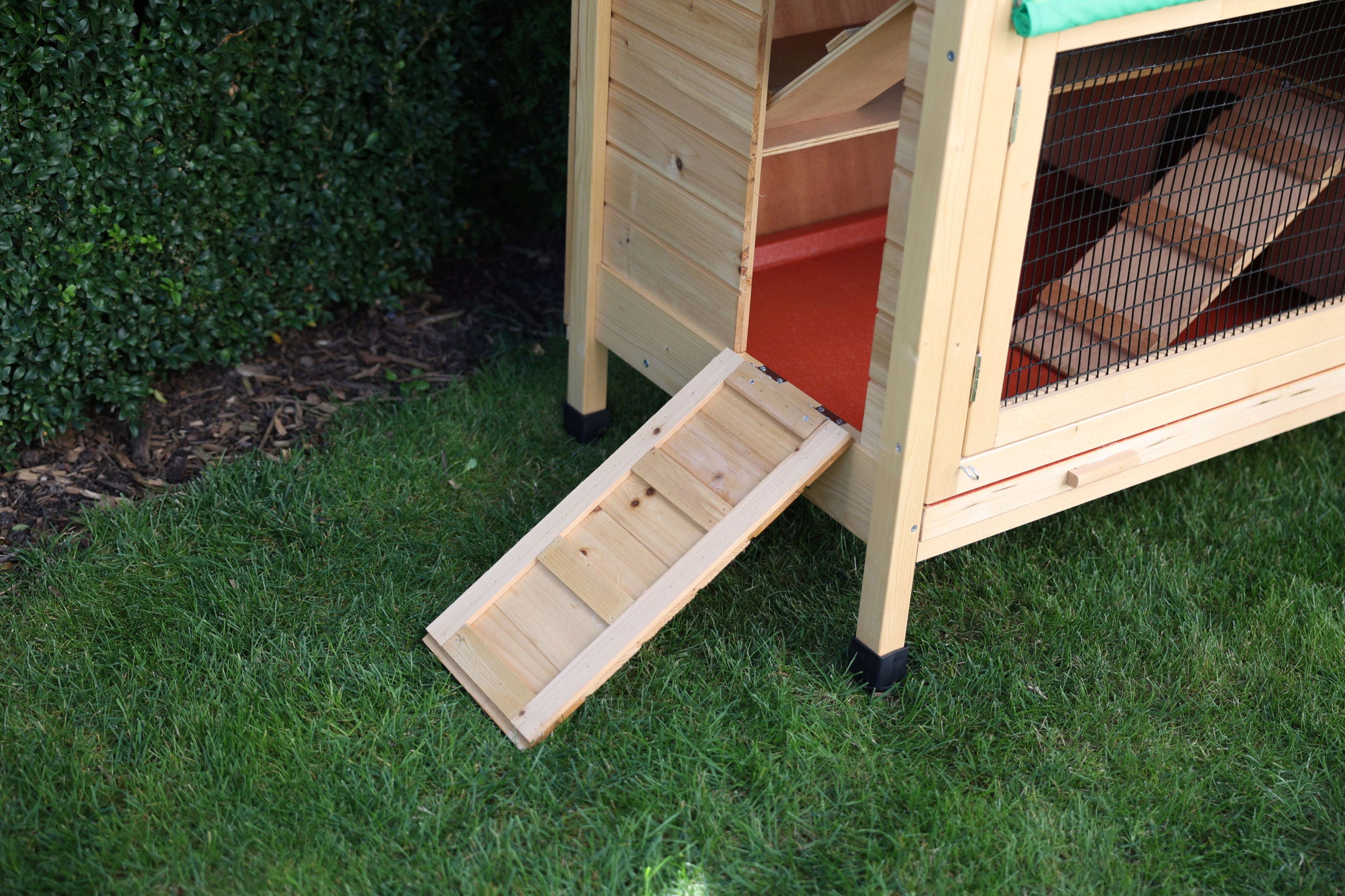 Dieser vielseitige Stall bietet durch seine intelligente Aufteilung auf mehreren Ebenen ein Maximum an Platz und Komfort. Die Kombination aus Schutzbereichen und funktionalen Details macht ihn zur idealen Behausung für deine Tiere.