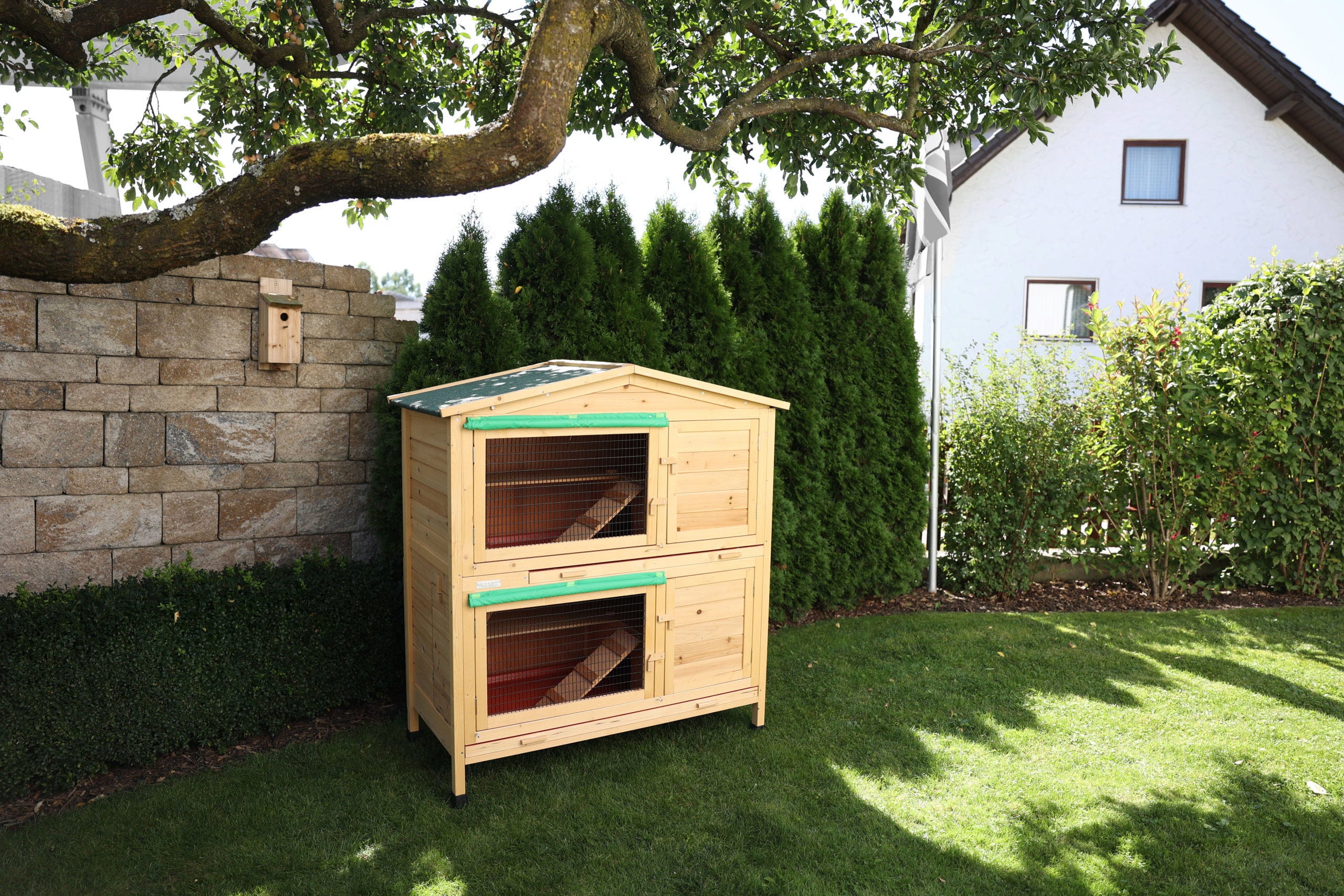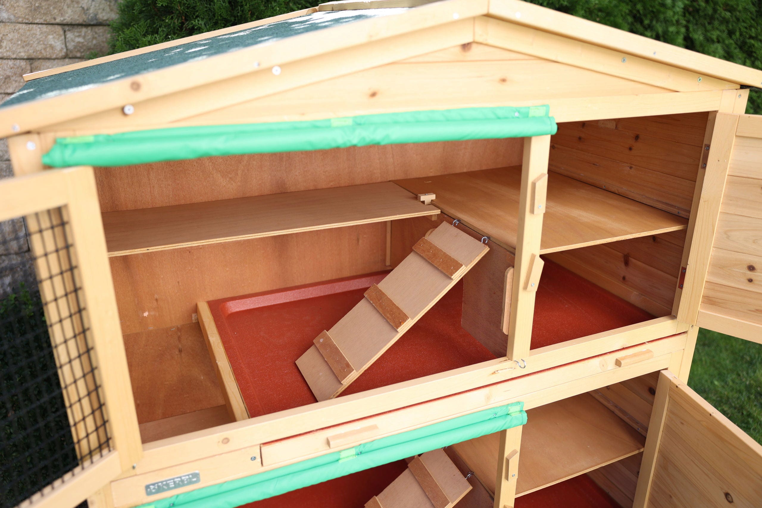- Wetterschutz: Ein wetterfestes Bitumendach sowie praktische Rollmatten schützen die Tiere zuverlässig vor Wind, Regen und Sonne.