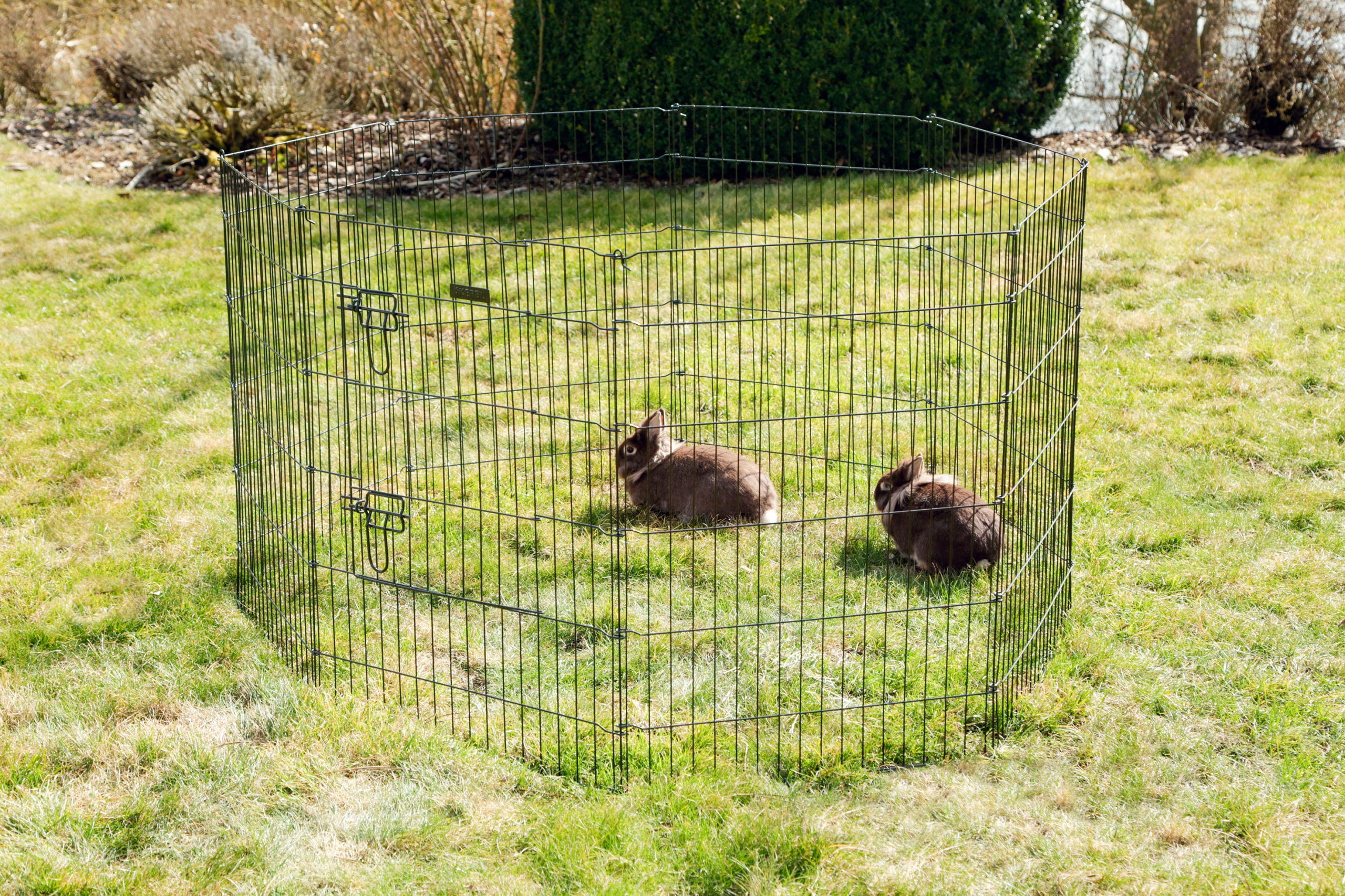 Dieses vielseitige Gehege bietet Welpen, und Kleintieren wie Zwergkaninchen und Meerschweinchen einen sicheren Raum im Freien und lässt sich mit wenigen Handgriffen individuell anpassen.