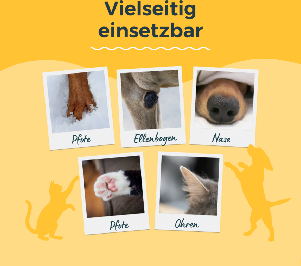 - Pflegt und schützt Haut, Nase, Ohren und Pfoten